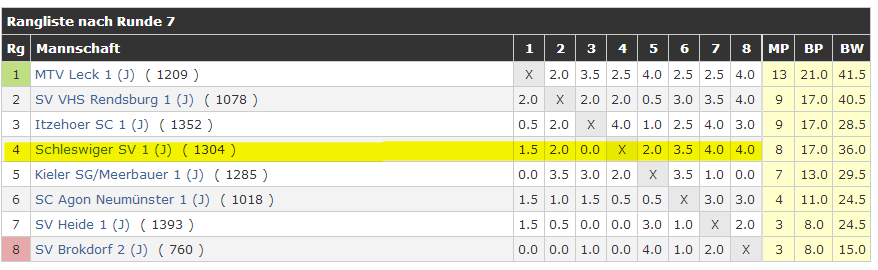 | Rangliste: Stand nach der 7. Runde | ||||||||||||