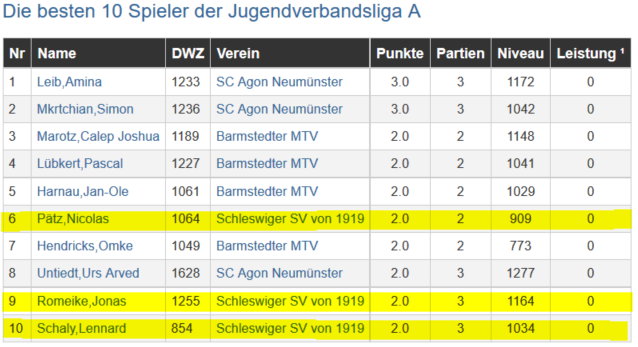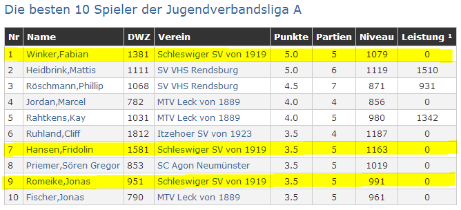 | 5. | Schaly,Lennard | U16 | * | Schleswiger SV | GER | 3 | 0 | 2 | 3.0 | 28.5 | 7.00 | |