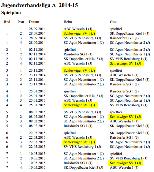inzwischen hat der Staffelleiter Leck und Husum gestrichen, weil deren Stichkampf um den Aufstieg immer noch nicht stattgefunden hat. Zusätzlich hat Kropp sich wieder abgemeldet, so dass wir jetzt mit 8 Mannschaften 9 Runden spielen (?!).